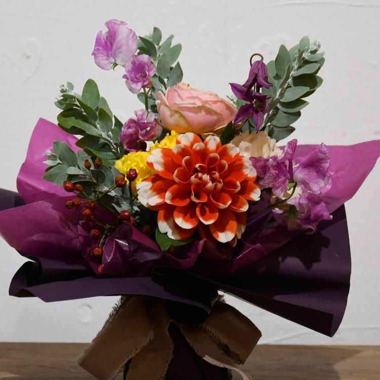 季節に応じて仕入れた旬の新鮮なお花を使ってブーケをお作りいたしますので、花材のご指定はできません。