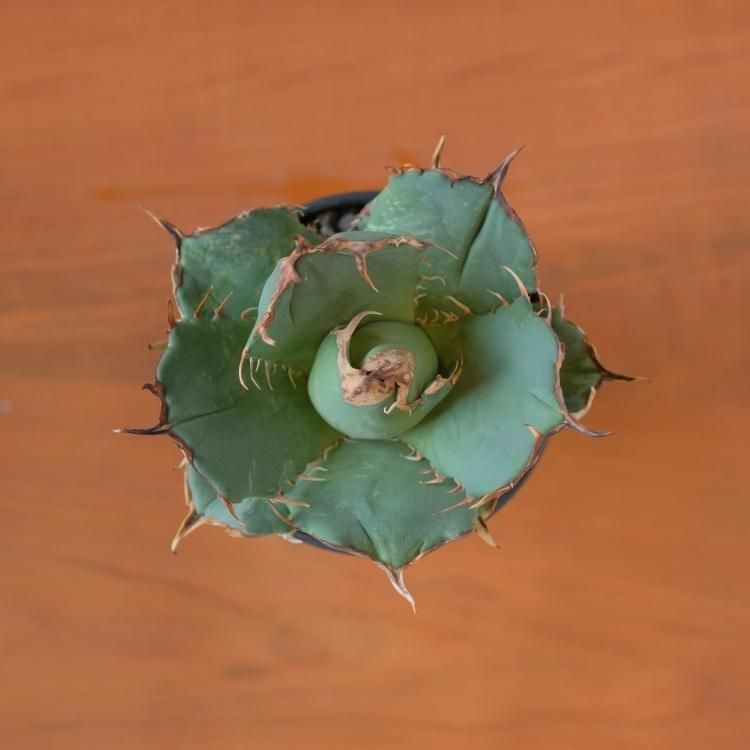 幅の広い葉としっかりとした鋸歯が特徴のアガベです。ボール状に育ち詰めて育てることもできるかっこいい品種です。ボール状のアガベがお好きな方にお勧めのアガベです。