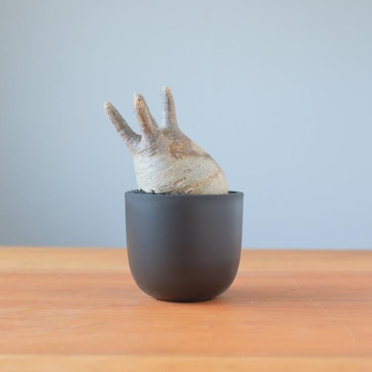 マダガスカル原産の塊根植物です。個性的でぷっくり丸みのある形で暖かくなると黄色い花を咲かせることが特徴です。「象牙宮」という和名があり日本でも親しまれている人気が高いパキポディウムです。発根済みの株ですので安心してご購入ください。輸送などの原因で枝折れしている場合がございますが、ご了承ください。