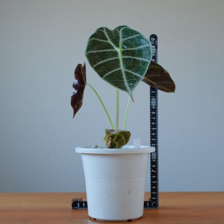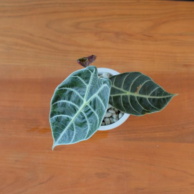 甲羅のような葉脈が特徴的なアロカシアです。くっきりと白く、細かく枝分かれする葉脈が美しい人気のアロカシアです。花宇宙さんの株でしっかり育てられており安心してご購入いただけます。