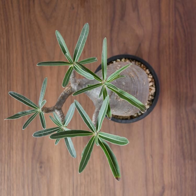 マダガスカル原産の塊根植物です。個性的でぷっくり丸みのある形で暖かくなると黄色い花を咲かせることが特徴です。「象牙宮」という和名があり日本でも親しまれている人気が高いパキポディウムです。発根済みの株ですので安心してご購入ください。輸送などの原因で枝折れしている場合がございますが、ご了承ください。